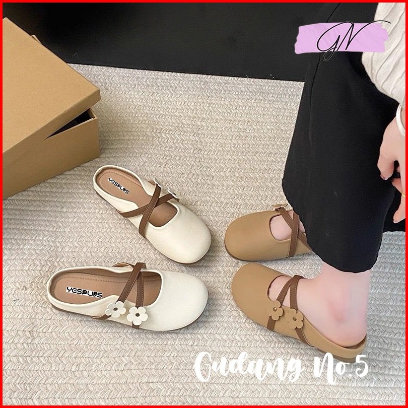 Gn-831 Flatshoes Jelly Wanita Import Slop Flat Matte Bunga Antislip Fashion Balerina Terbaru