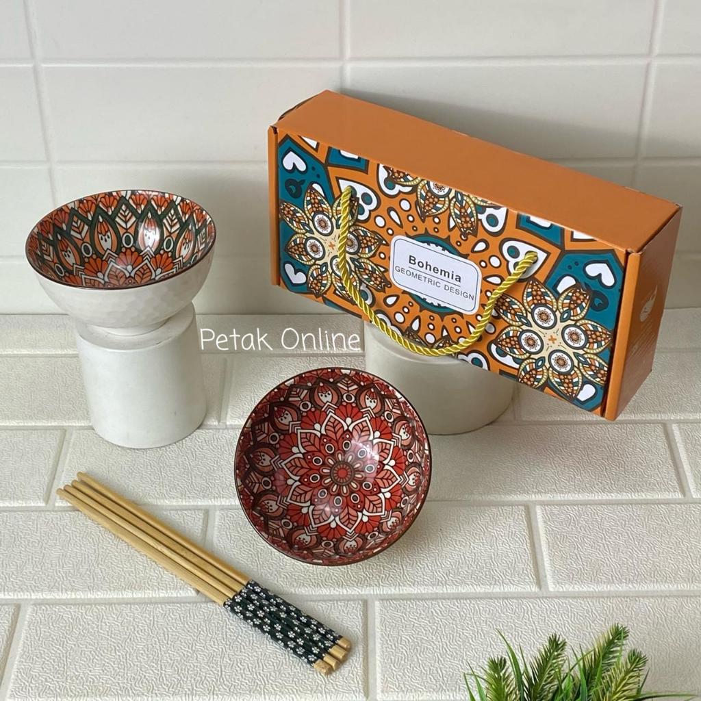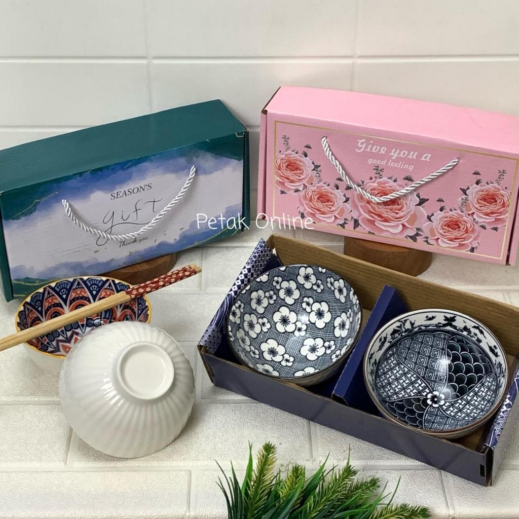 Hampers Mangkok Set Keramik Motif Korea 2 in 1 Plus Box Murah Gratis Ongkir Garansi Pengiriman