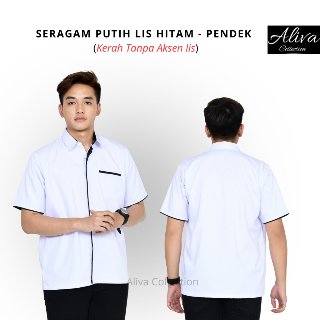 Kemeja Kerja Putih Lis Hitam Pria | Kemeja Seragam Kerja Pria Premium American Dril | Seragam Kantor