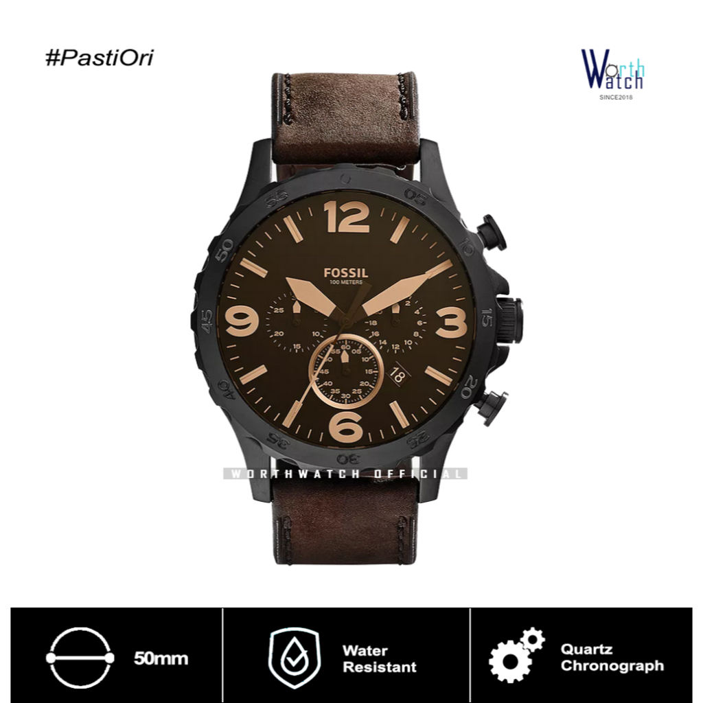 [PROMO] Jam Tangan Pria Elegan Garansi 2 Tahun Chronograph Tanggal Aktif Dark Brown Leather Strap 50mm
