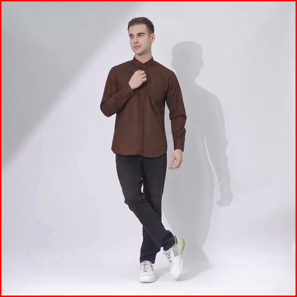 Kemeja Polos Coklat Mahogany Pria Lengan Panjang Slimfit Kemeja Hitam Kemeja Putih Kemeja Casual