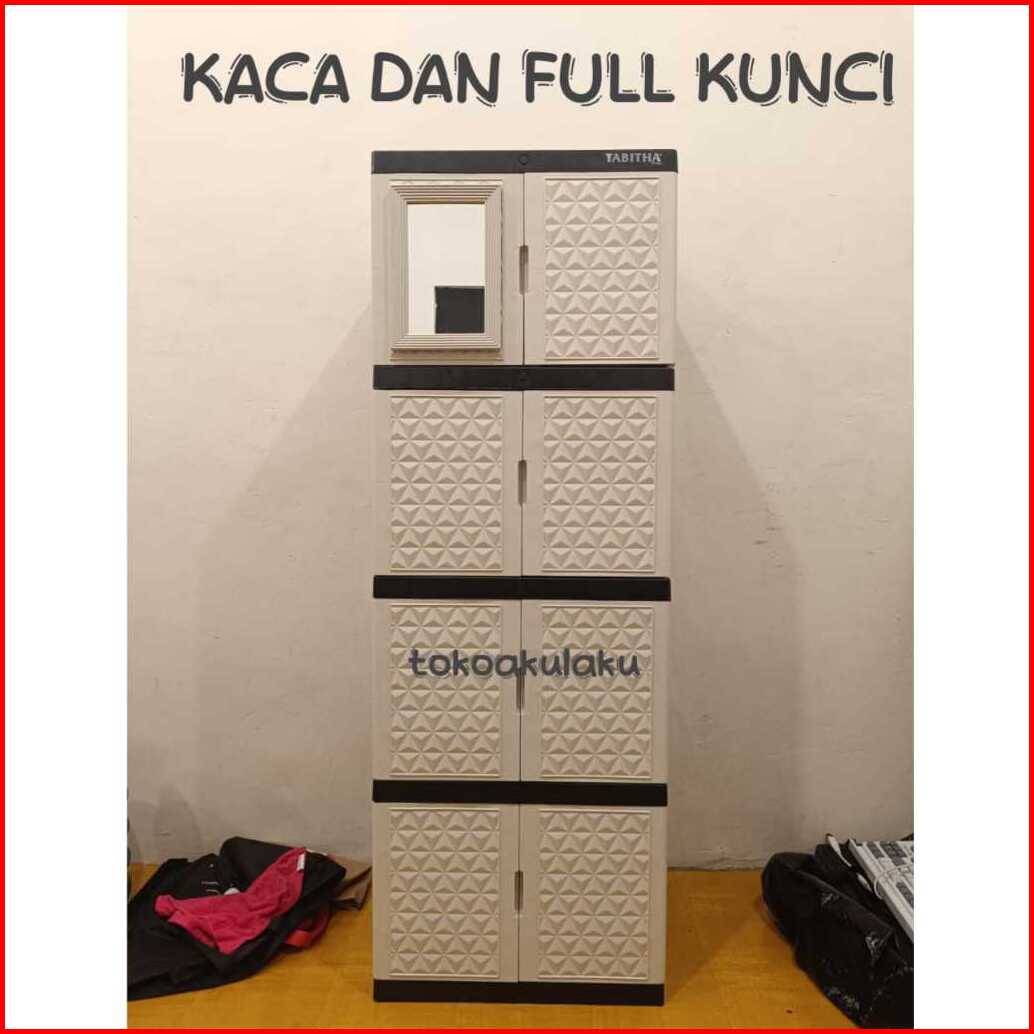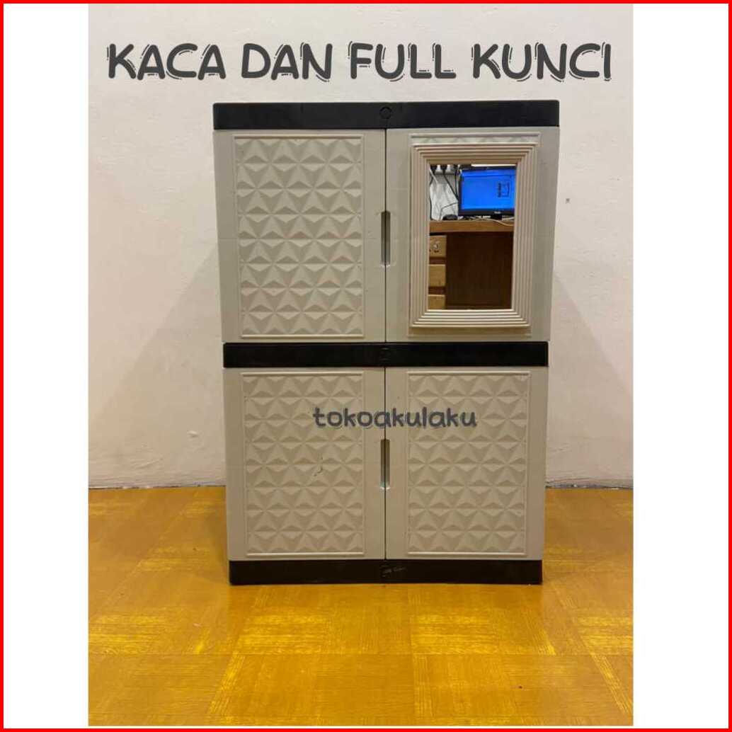 Lemari Plastik Lemari Pakaian Lemari Baju Kaca Putih Full Kunci