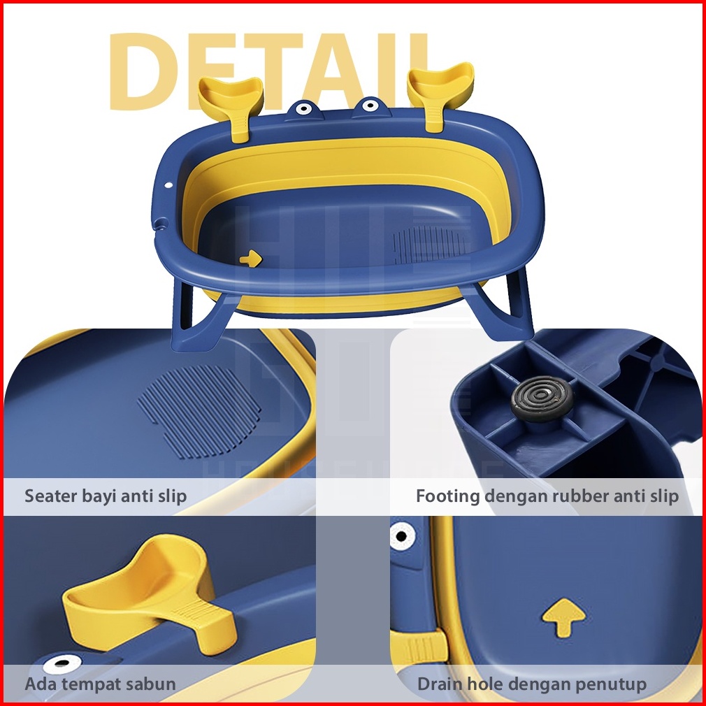 Hugo Bak Mandi Bayi Lipat Portable Crabby Foldable Baby Bath Tub Tempat Mandi Bayi Dengan Bantal Mandi