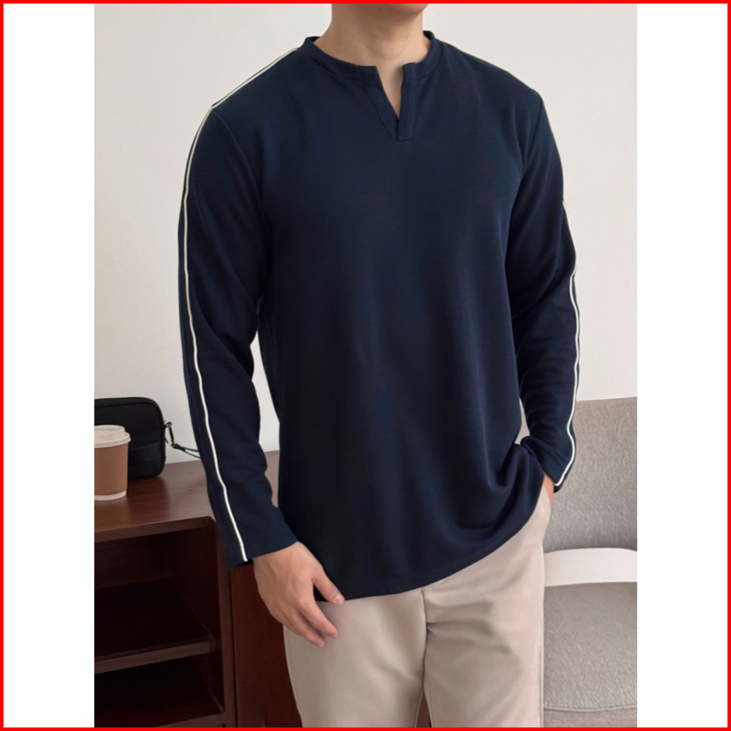 Kadaka Mt-0168 Long Sleeves Top Atasan Pria Lengan Panjang Detail List