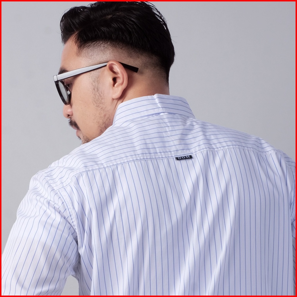 Dgm Kemeja Pria Salur Lengan Panjang Premium Garis Biru Dan Putih Garis Kecil 2833