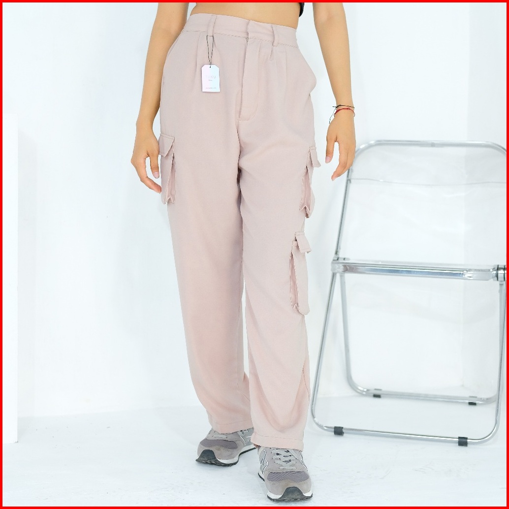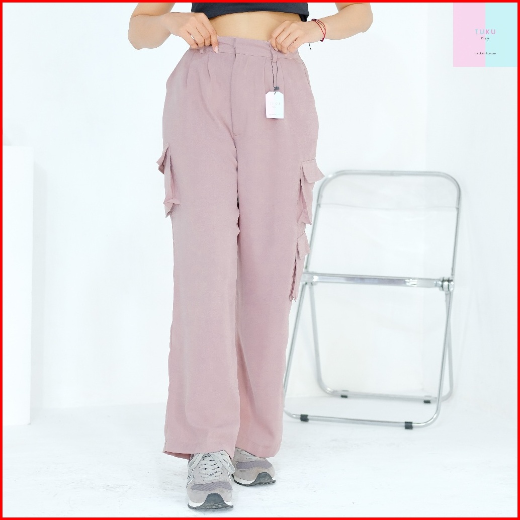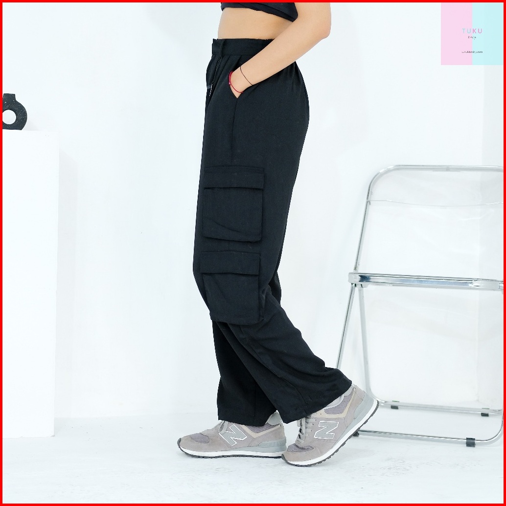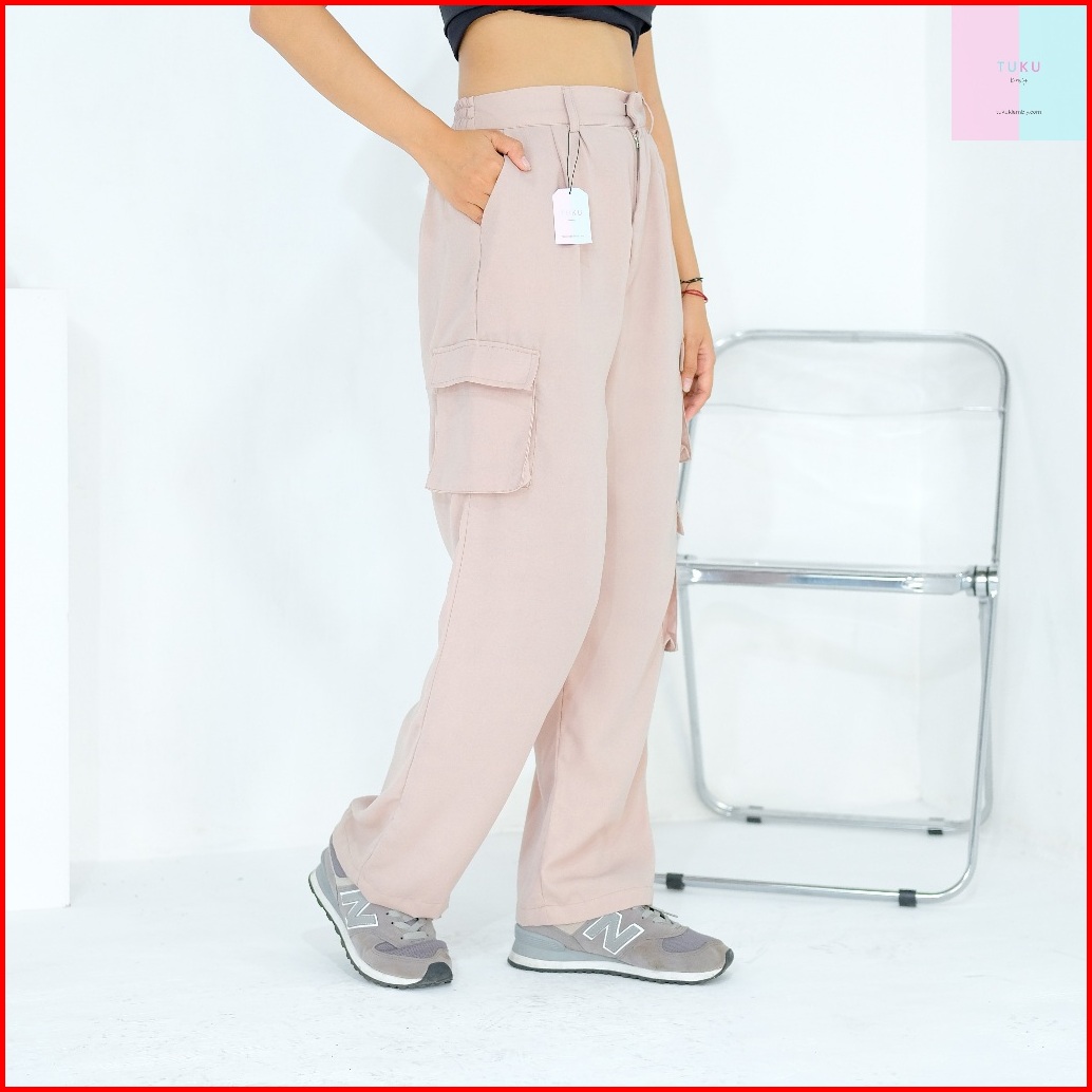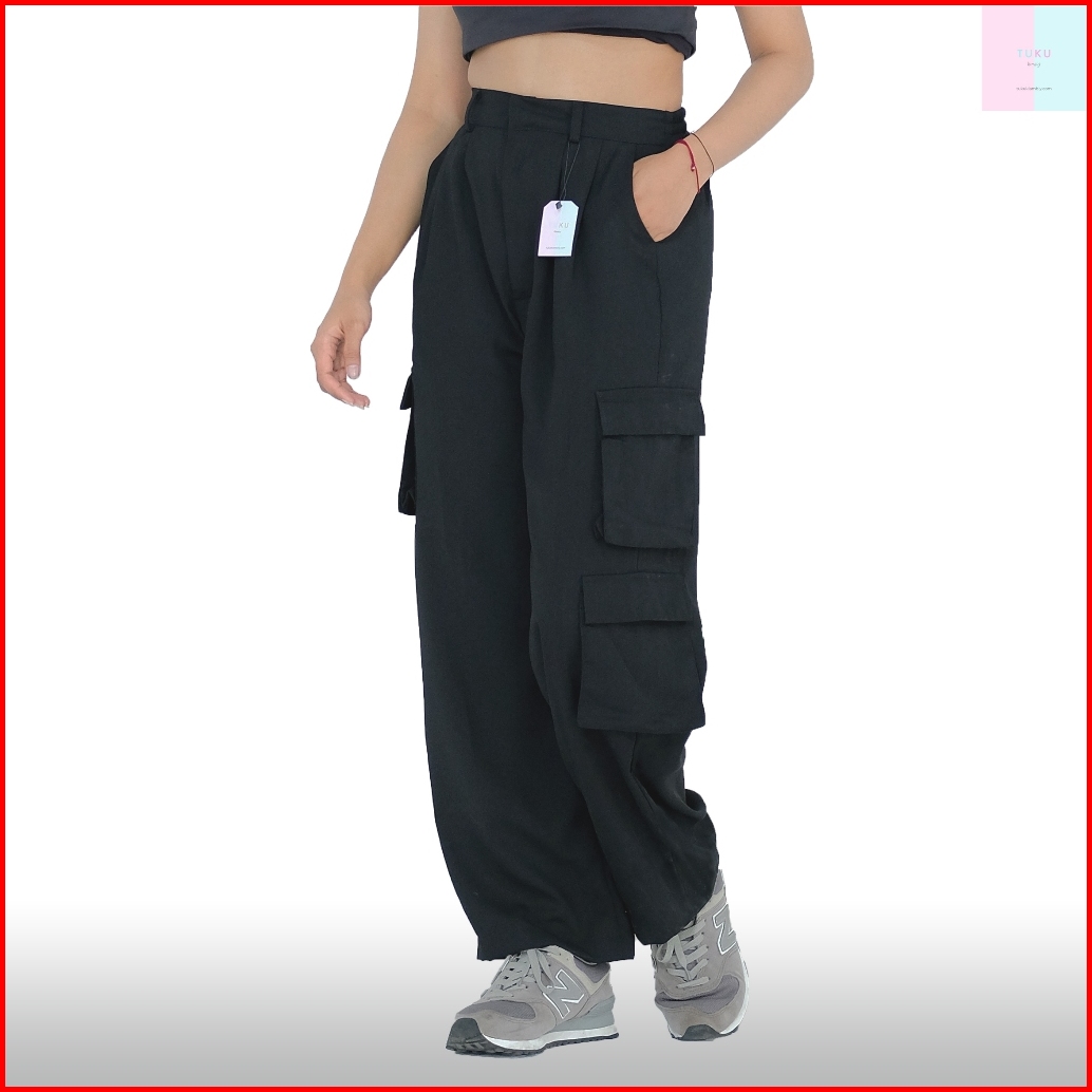 Tukuklambiy - Cargo Pants Wanita Highwaist Loose Korea Kargo - Celana Cargo Jumbo Wanita