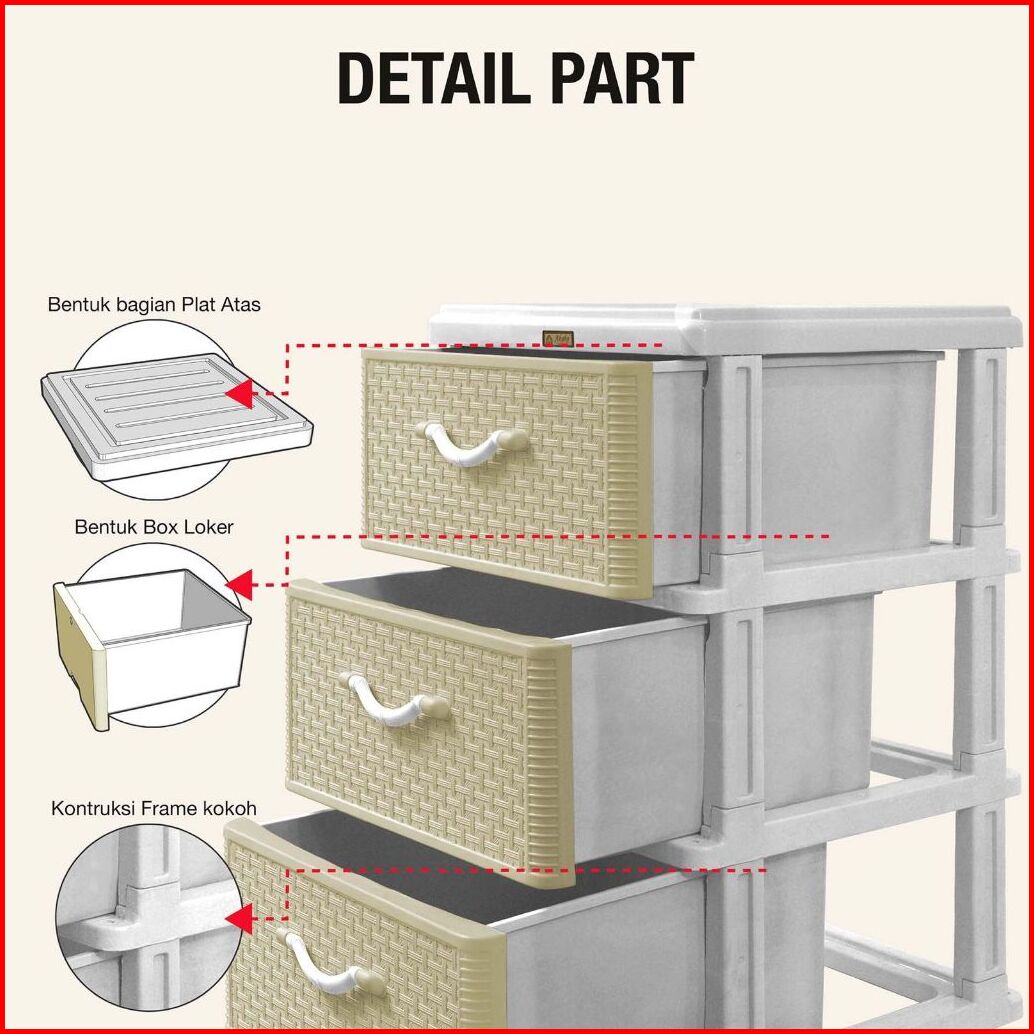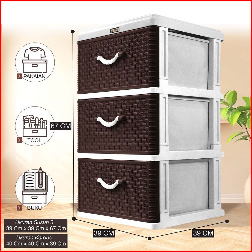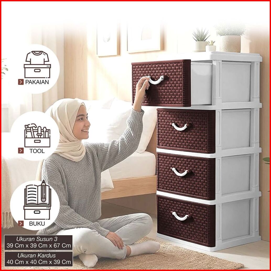 Akako - Lemari Laci Plastik Motif Rotan Susun 3 4 5 New Promo Terlaris Bergaransi