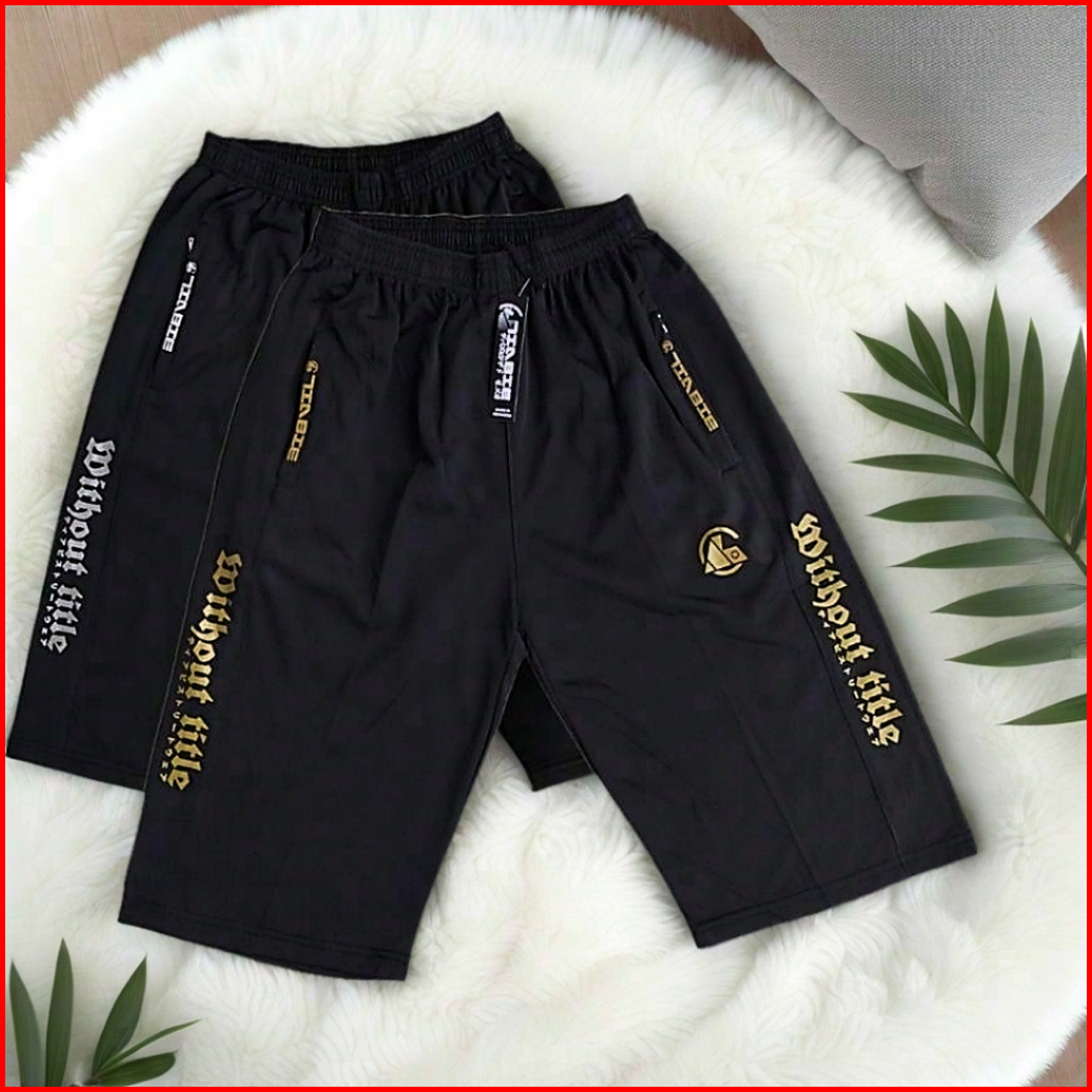 Tiabie Ab72 Celana Sontog 3 4 Saku Resleting Olahraga Santai Pria Dewasa Running Gym Sport