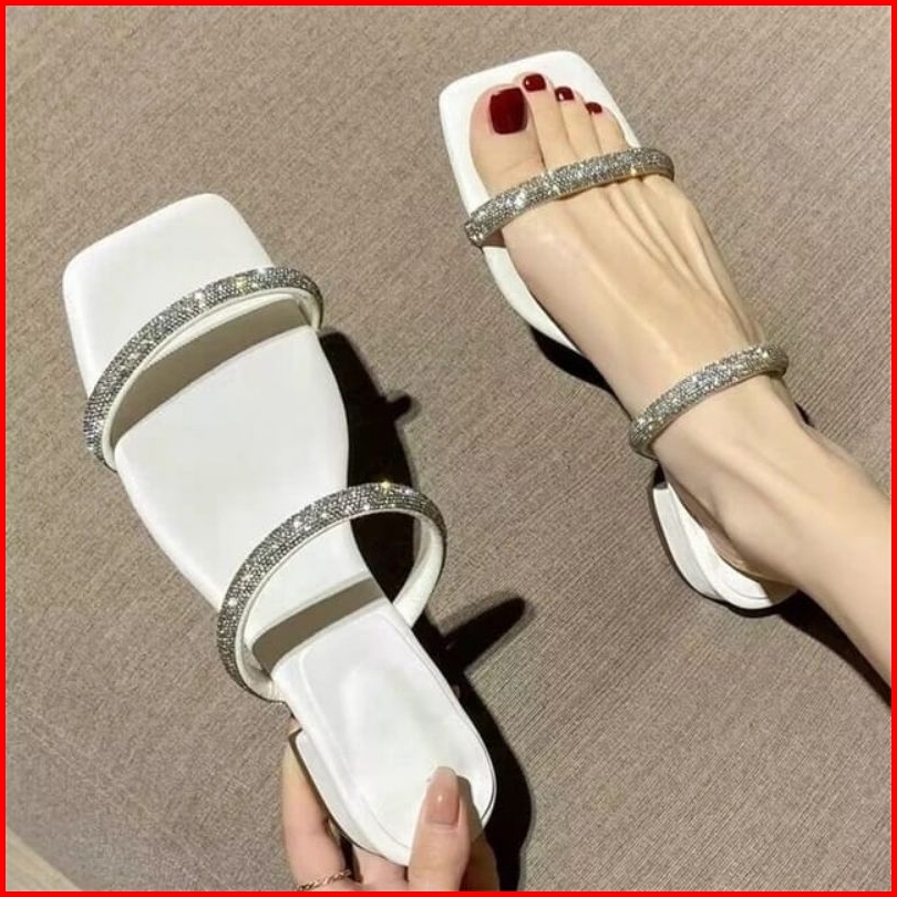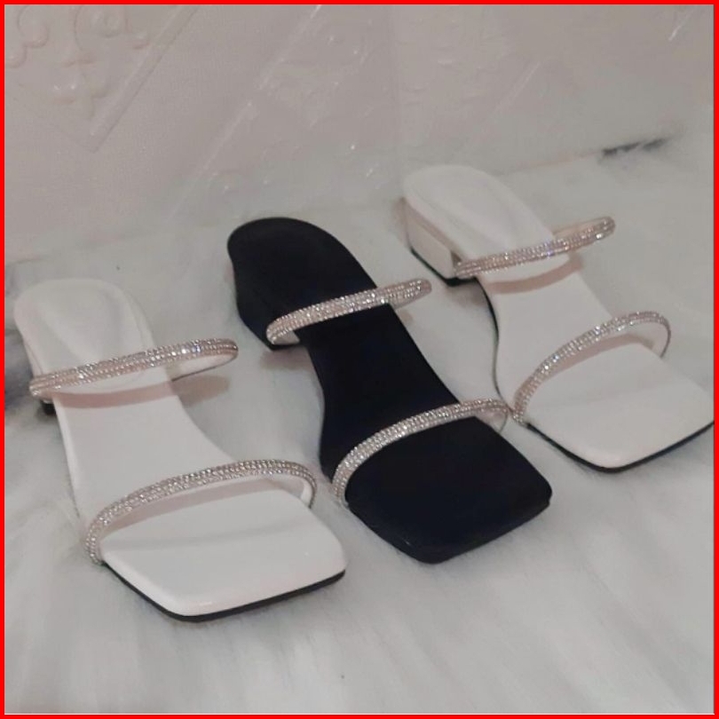 Sandal Wanita Heels Pesta 3 Cm Jeli Permata Import Ar.10