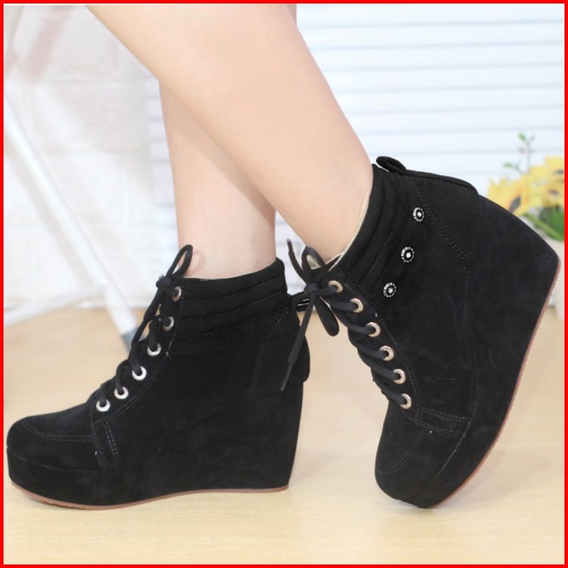 Boots Wedges Wanita Bay 01 Suede Bludru 7cm