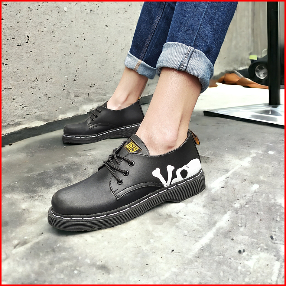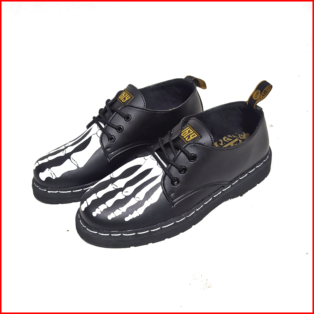 Ga Footwear Luks - Sepatu Pantofel Tali Formal Docmart Skull Tengkorak Smile Kerja Main Gaul