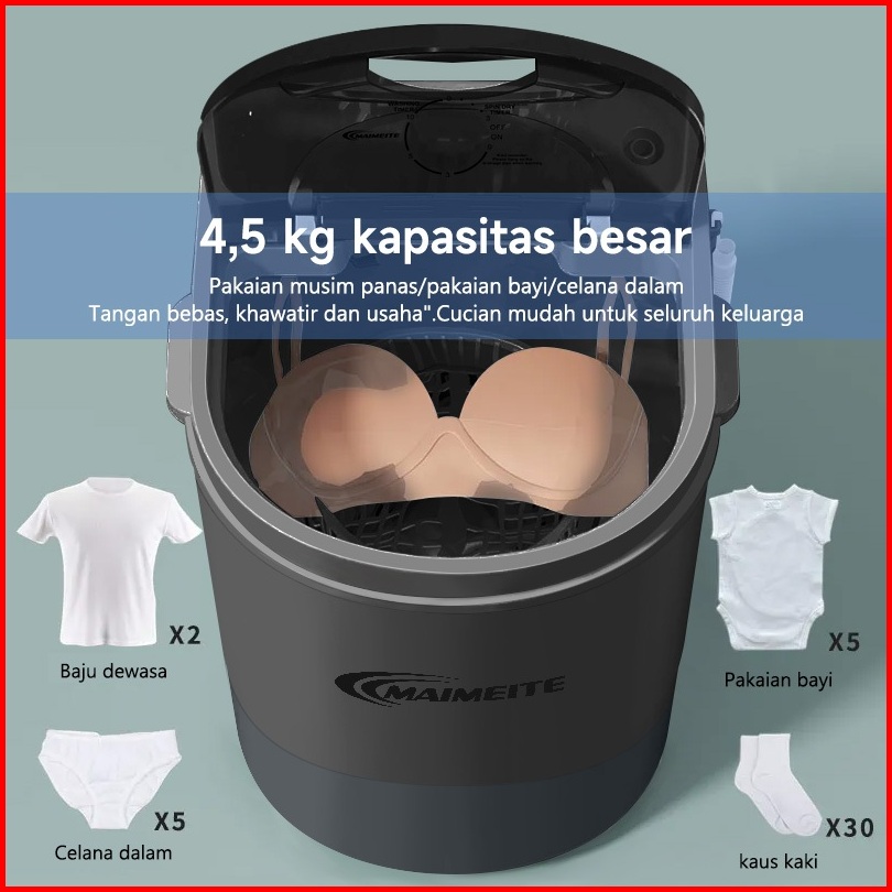 Maimeite Mesin Cuci Mini Alat Pengering Pakaian Portabel Washing Ringan Daya Rendah Kapasitas 4.5kg