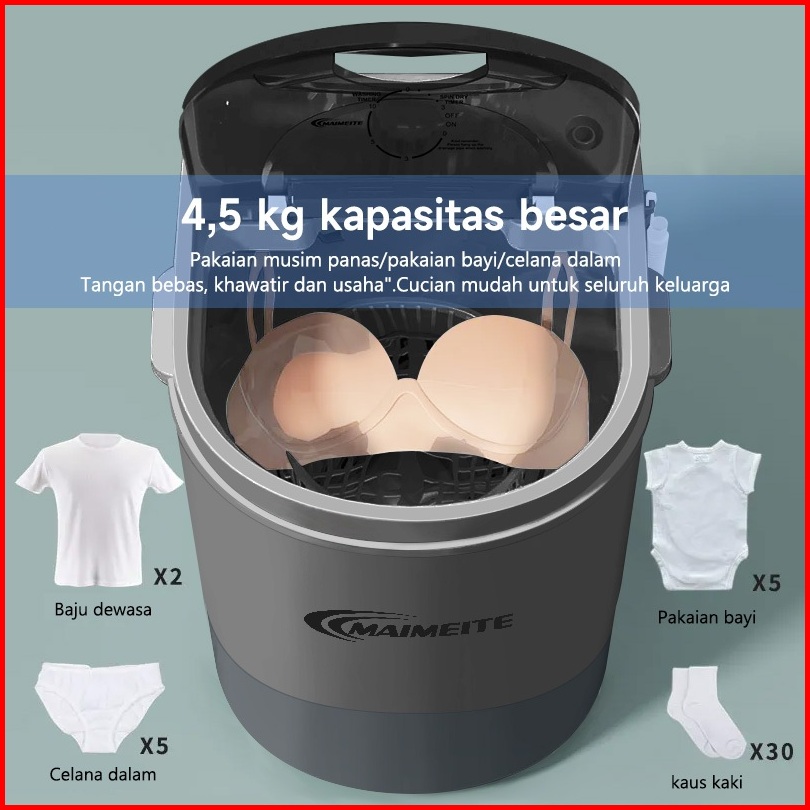 Maimeite Mesin Cuci Portable - Desain Kuat Pulsator Bionik - Cocok Untuk Kosan Rumah Kecil