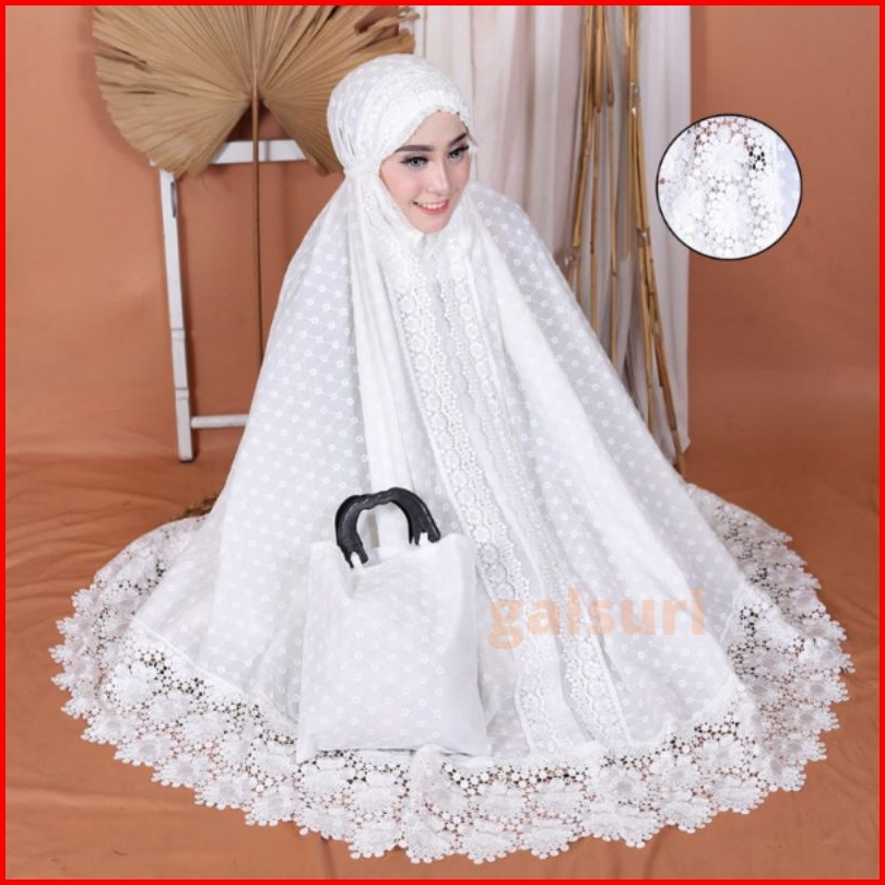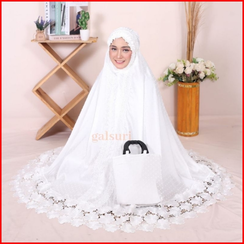 Mukena Dewasa Katun Paris Putih Renda Telekung Perlengkapan Sholatl