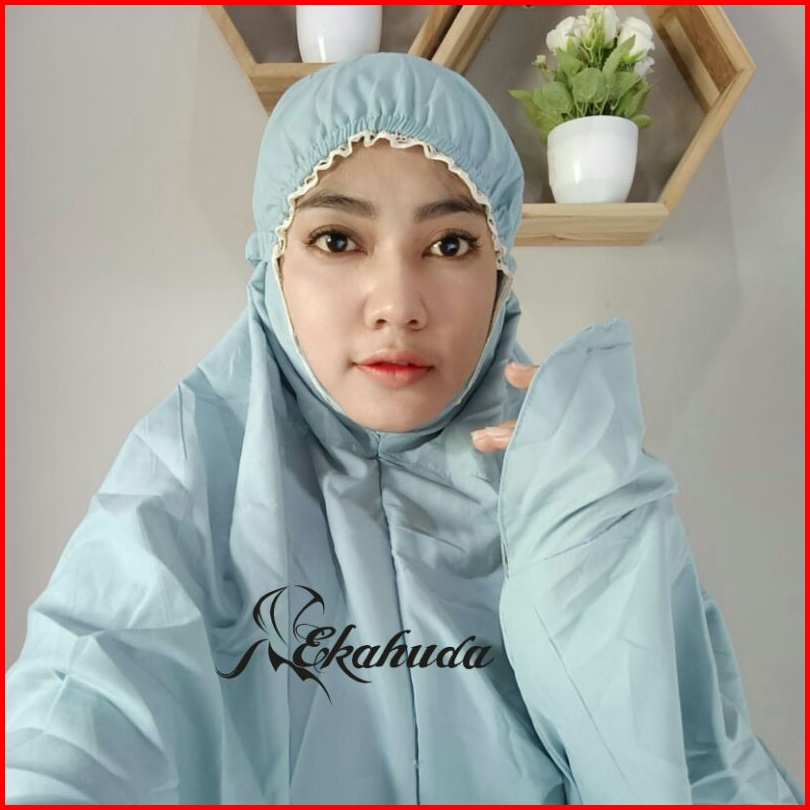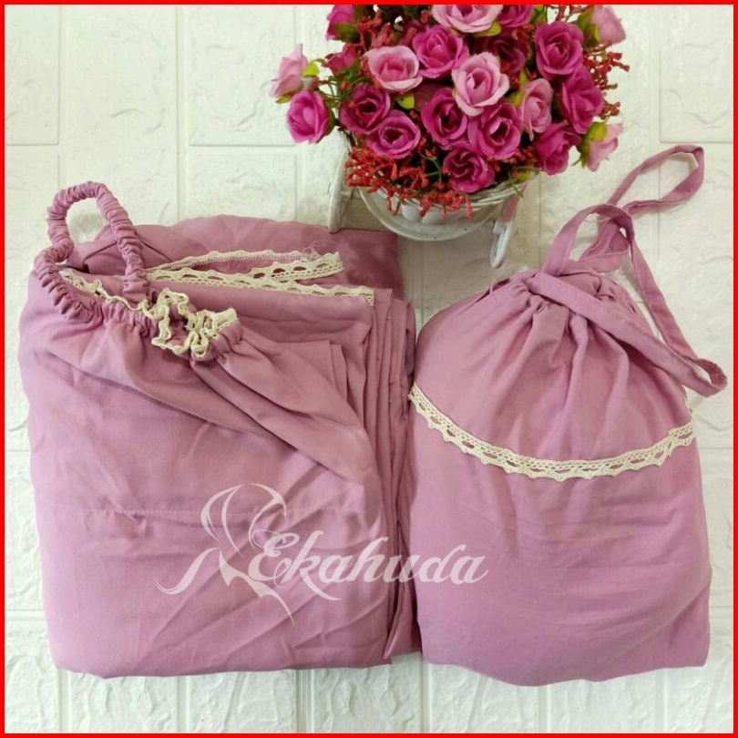 Mukena Terusan Traveling Renda Mukenah Polos Katun Micro Premium Free Tas