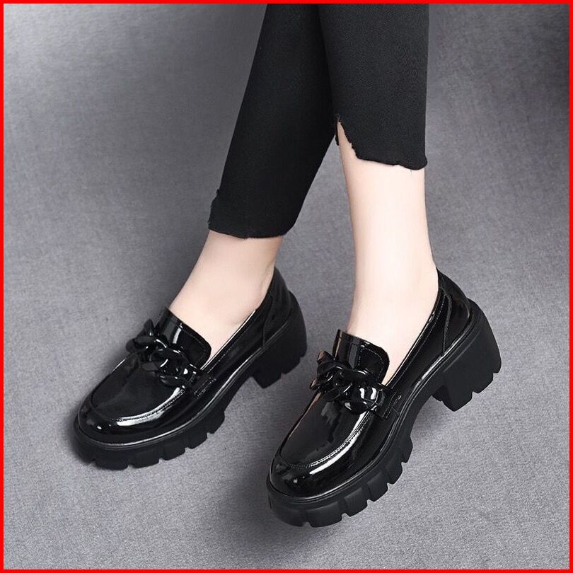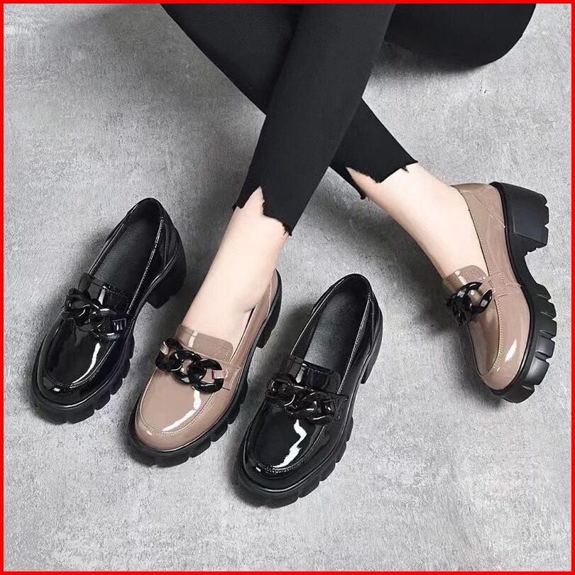 Sepatu Docmart Wanita Loafers Rantai Tinggi Dua Warna
