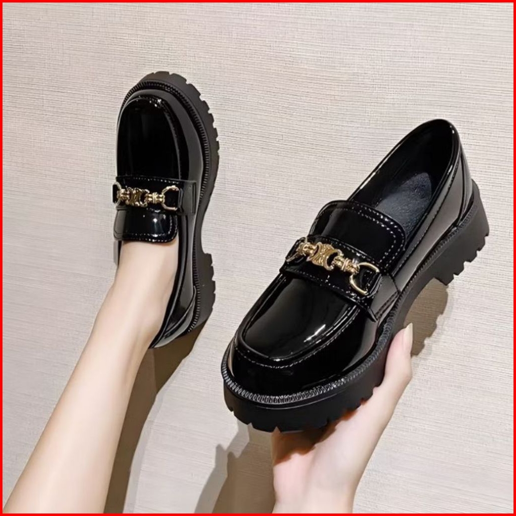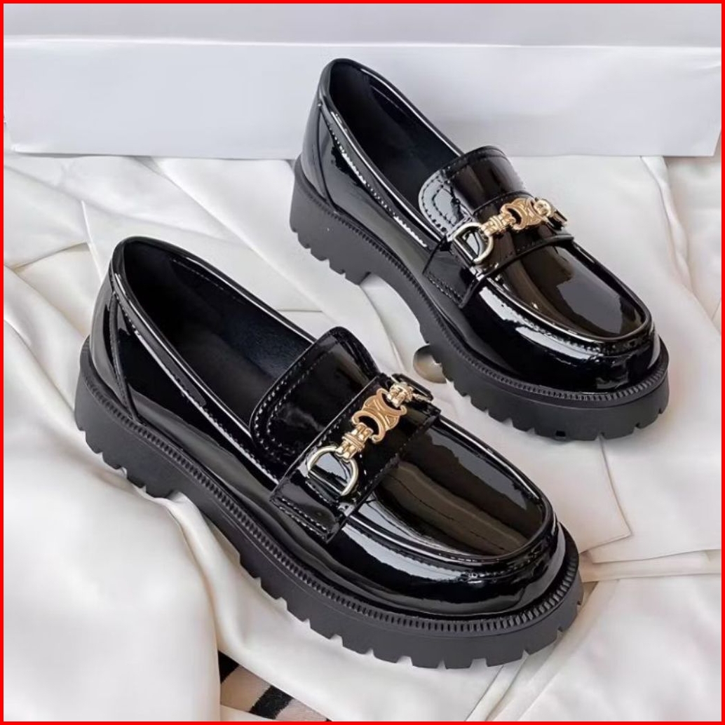 Sepatu Docmart Wanita Hitam Glosy Sepatu Kasual Import Premium Sepatu Flat Loafers Kulit Sintetis