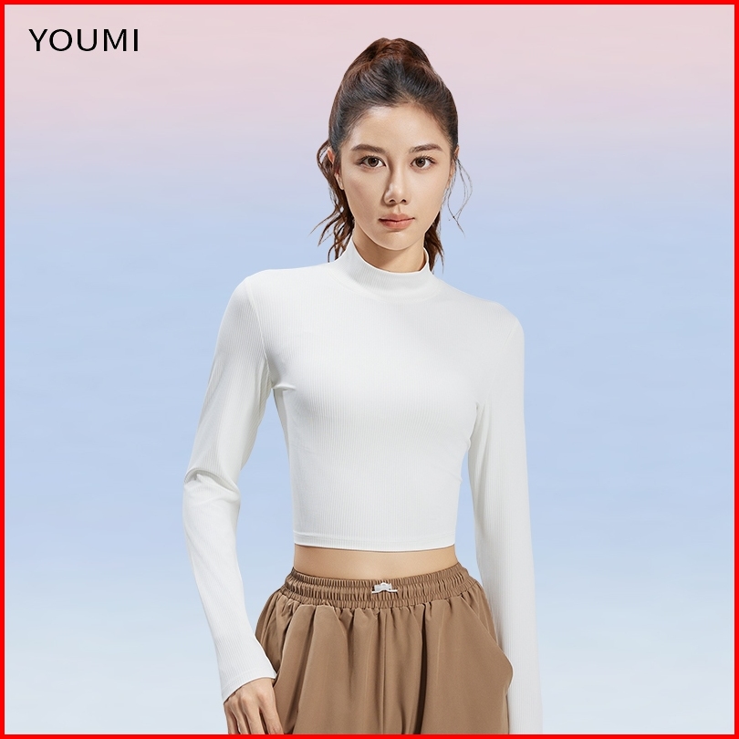 Atasan Kaos Olahraga Wanita Lengan Panjang Manset Crop Yoga Gym Fitness Senam Running Ym121