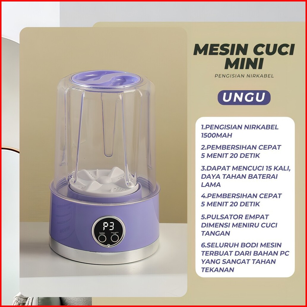 Heefn Mesin Cuci Mini Portabel Tanpa Kabel Underware Mini Washing Machine