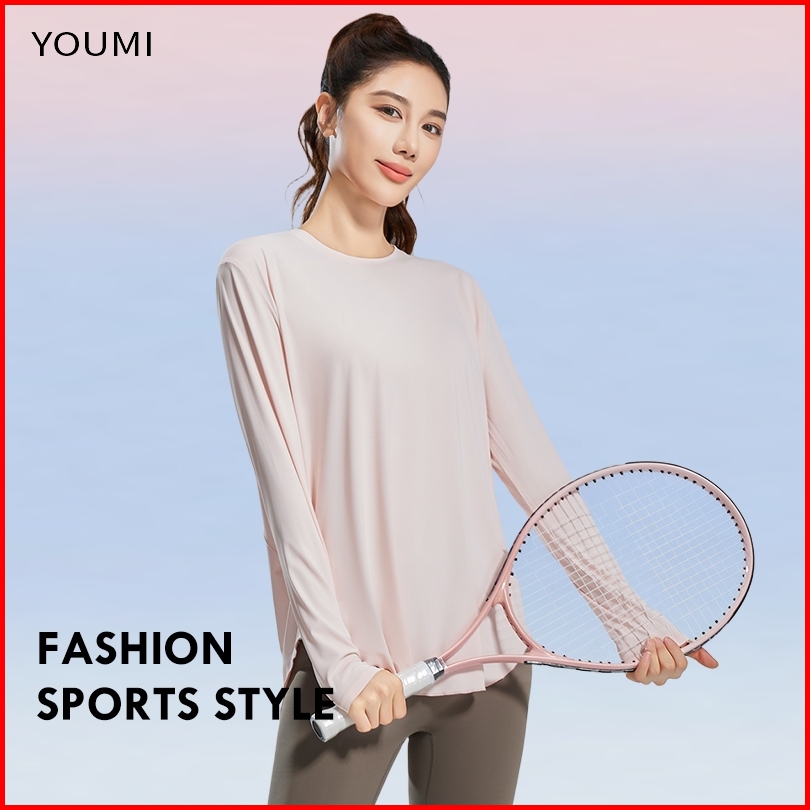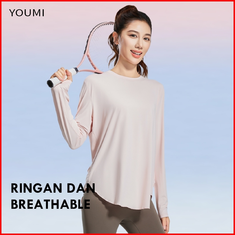 Youmi Baju Kaos Olahraga Wanita Lengan Panjang Polos T Shirt Long Sleeve Premium Kekinian Atasan Senam Aerobic Terbaru S