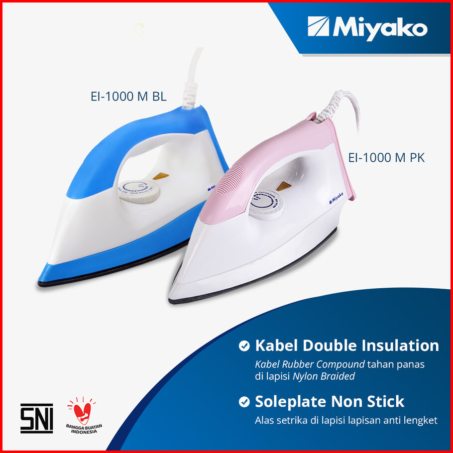 Miyako Setrika Listrik Teflon Anti Lengket 395 Watt Ei1000 M Ei-1000m