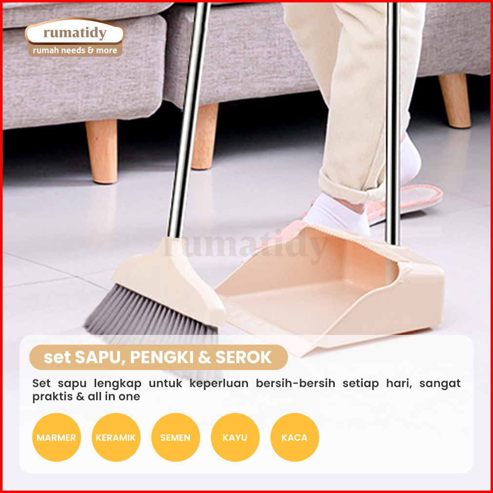 Rumatidy - Set Sapu Pengki Lipat 3 In 1 Alat Pembersih Lantai Dengan Serokan Air Stainless Kokoh