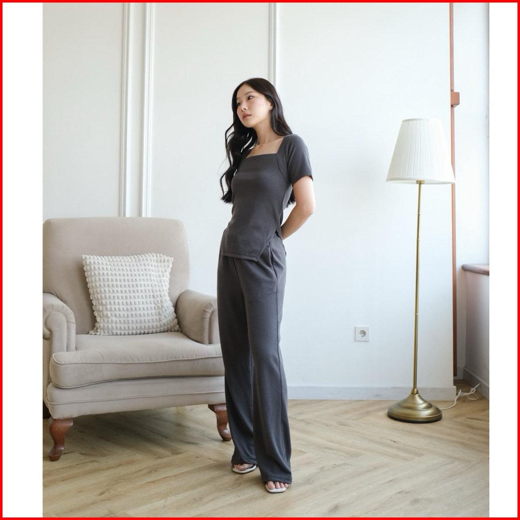 Rarenoa - Alexa Setelan Knit Baju Dan Celana Kulot Panjang Wanita Kasual