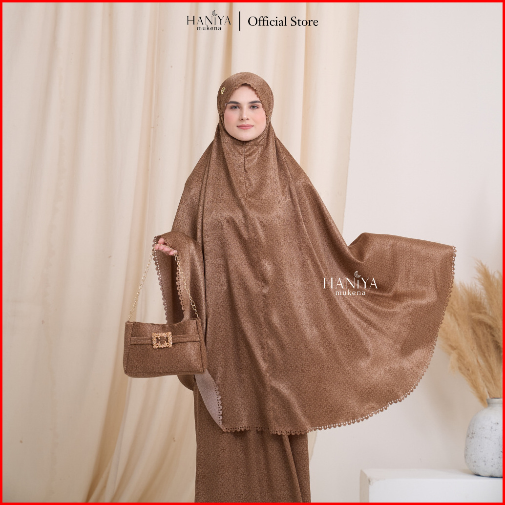 Haniya Mukena - Khalisa Series 2in1 Santorini Silk Motif Mewah Adem Lembut Seserahan Jumbo Dewasa Lasecut