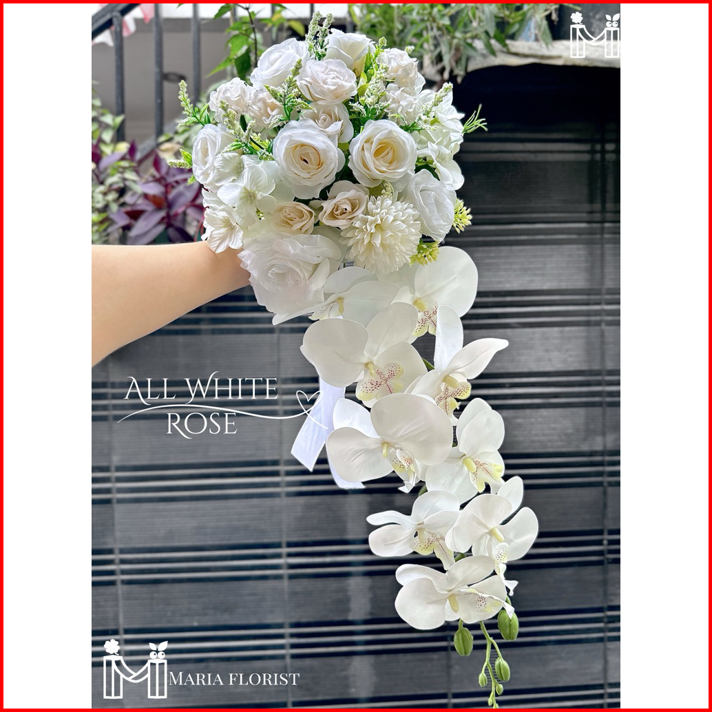 Wedding Handbouquet Juntai Casade Buket Bunga Pernikahan Artificial - Buket Pengantin Anggrek - Buket Anggrek Artificial