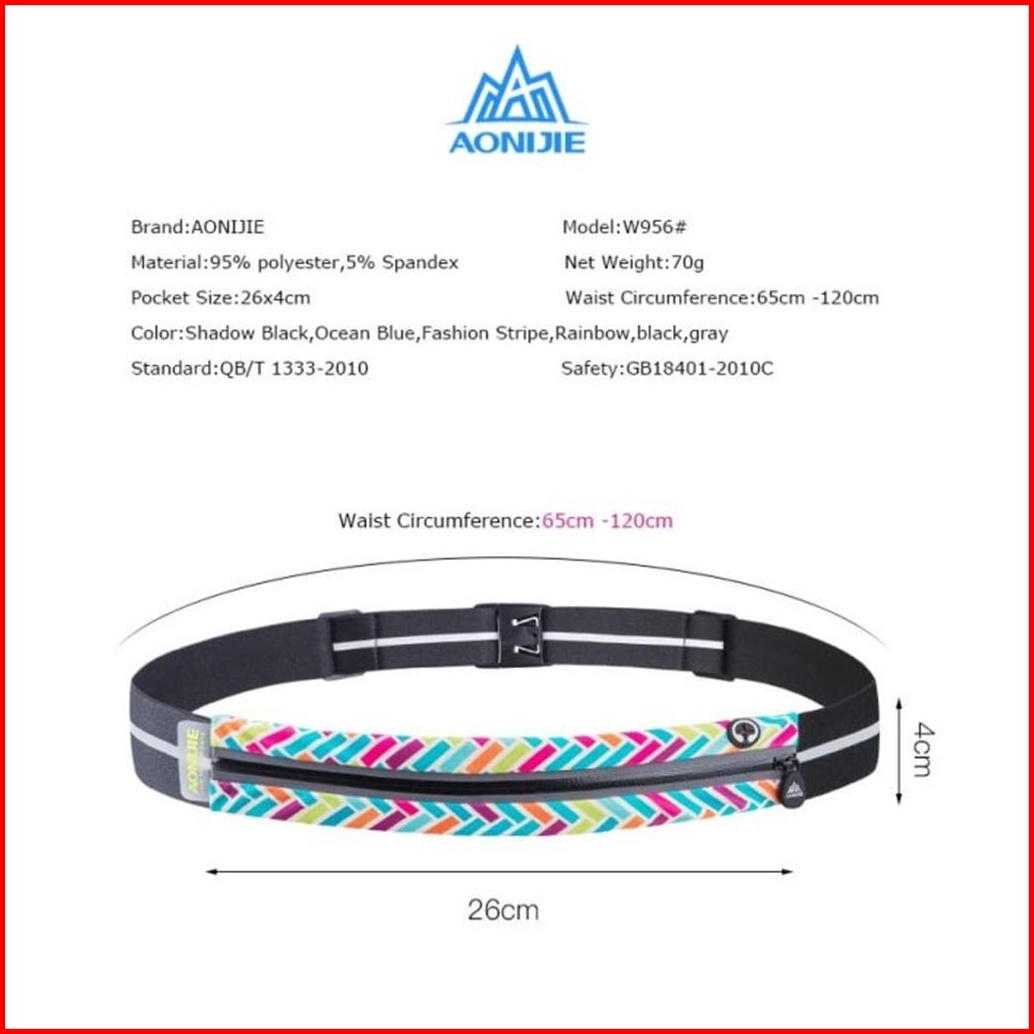 Aonijie Waist Bag W956 - Tas Pinggang Lari Sepeda Gym - Black