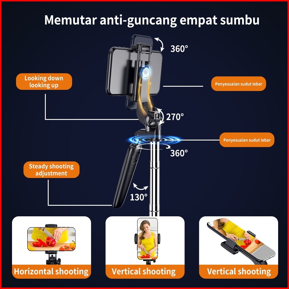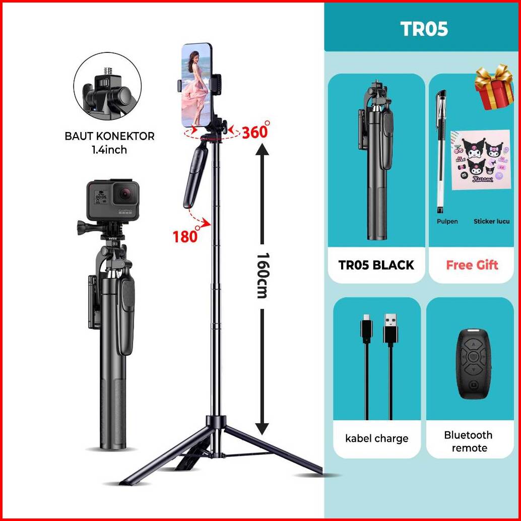 Hieen Tripod Tr05 A36 Remote Bluetooth Selfie Stick Tongsis Tripod 160cm Alluminium Anti Karat