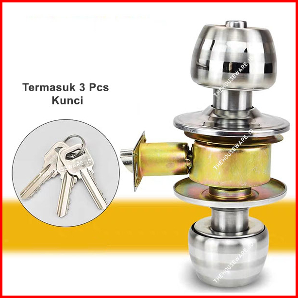 Kunci Pintu Kamar Mandi Bulat Onat Tarikan Gagang Handle Putar Stainless
