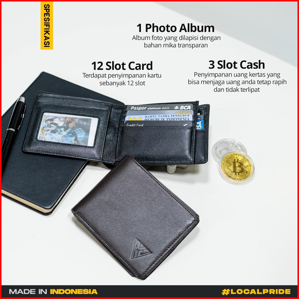 Rameja Dompet Pria Bahan Kulit Asli Motif Full Grain Rmjws03