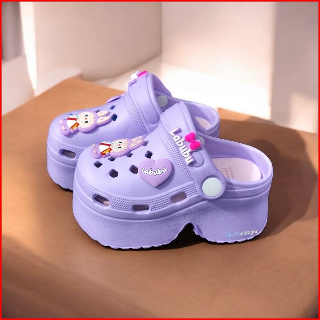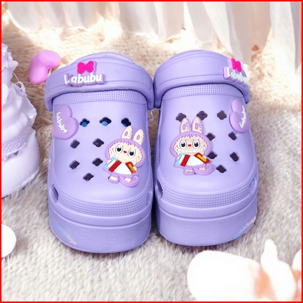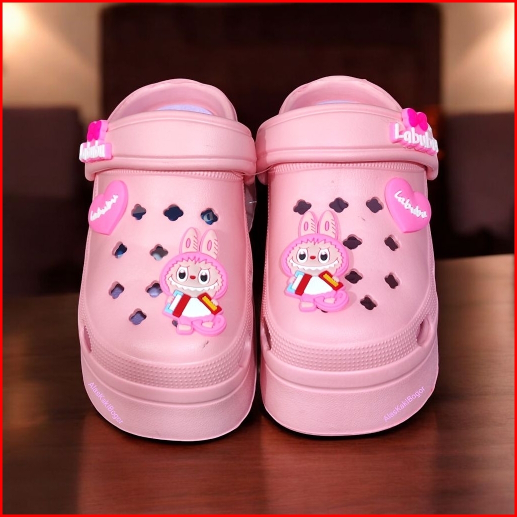 Sandal Baim Crocs Anak Perempuan Labubu Tinggi Terbaru Sendal Slop Anak Cewek Tali Belakang Rubber Non Slip Eva Fashion