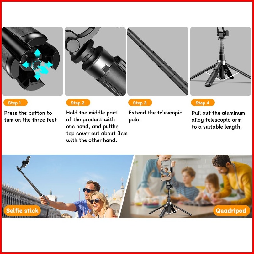 Toorea U69 130cm Tripod Tongsis Bluetooth Selfie Stick 4 Kaki Tripod Kamera Dslr Tongsis Paduan Aluminium Portabel Tripo