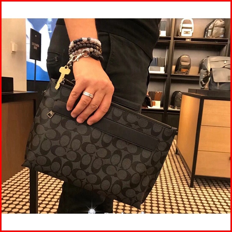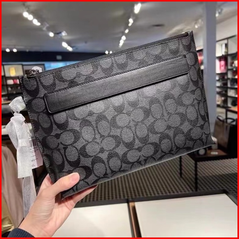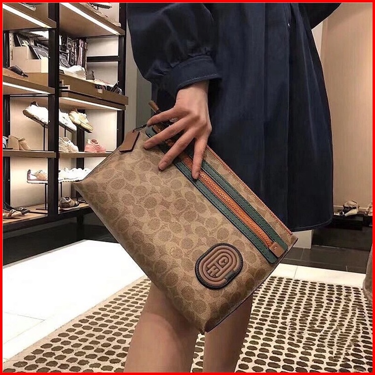 Coach Clutch Wrist Bag Cowhide With Pvc Material Men And Women Tas Pria Clutch Signature Canvas