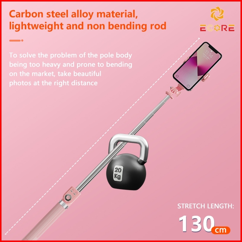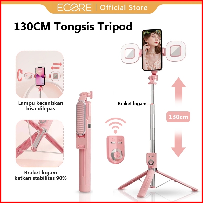 Ecore Tongsis Selfie Stick Tripod Bluetooth 130cm Paduan Aluminium Selfie Stick Remote Bluetooth 7 Tombol Monopod Portab