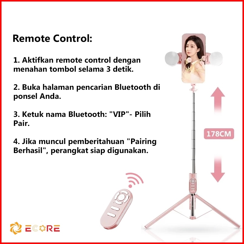 Ecore A31 Tongsis Tripod Bluetooth 178cm Tongsis Hp Selfie Stick Bluetooth Paduan Aluminium Selfie Stick Dengan Monopod