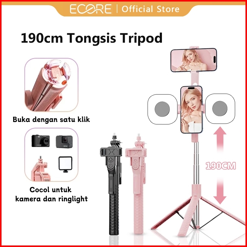 Ecore K50 Tongsis Tripod Bluetooth 190cm Dengan 2 Clip 1 4 Adaptor Buka Satu Cocok With Remote Selfie Stick Hand Stabili