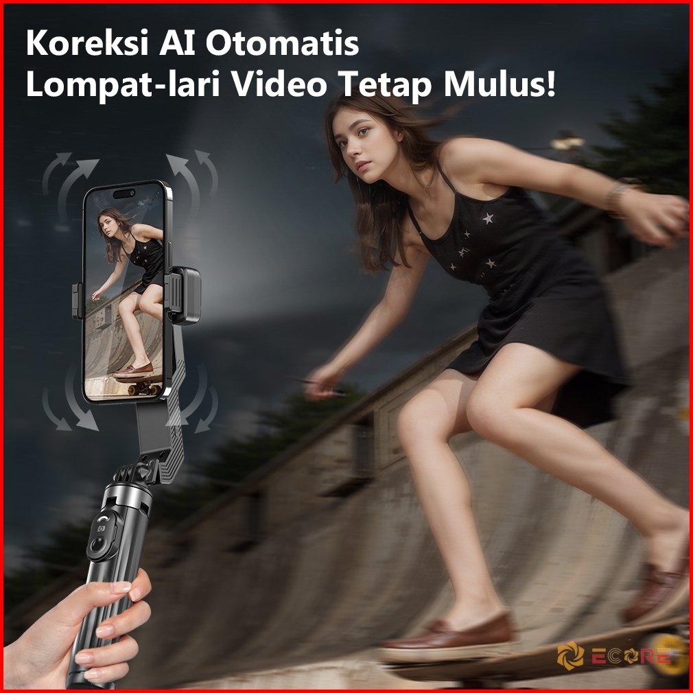 Ecore Q31 Handheld Gimbal Stabilizer 3 In 1 Tongsis Gimbal Portable Led Fill Light Hp Handphone Auto Balance Selfie Stic