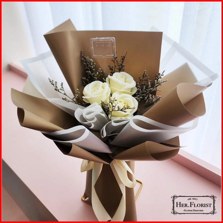 Her.florist Rose Triple Soap Dried Flowers Bouquet Buket Wisuda Anniversary Ulang Tahun Lamaran