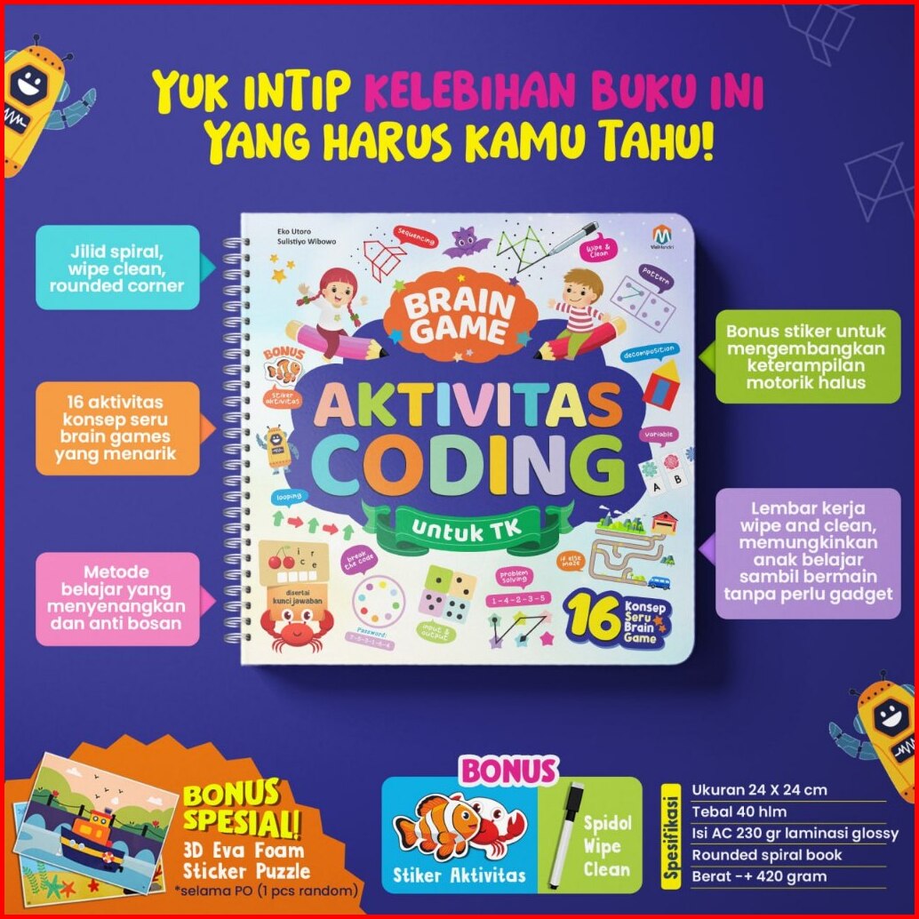 Buku Brain Game Aktivitas Coding Untuk Tk Berisi 16 Aktivitas Seru Belajar Logika -ziyadbooks