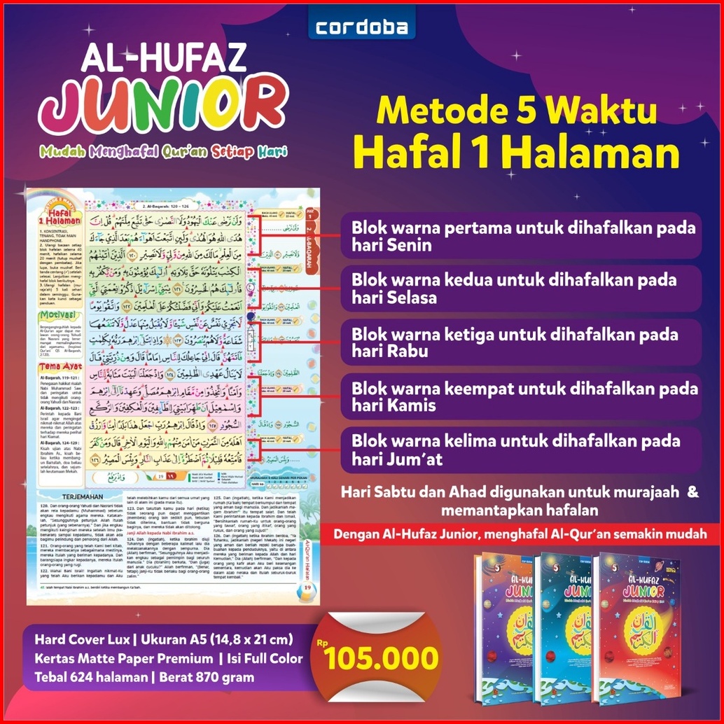 Cordoba Al Hufaz Junior Al Quran Hafalan Anak A5 Full Color Terjemah Tajwid Warna