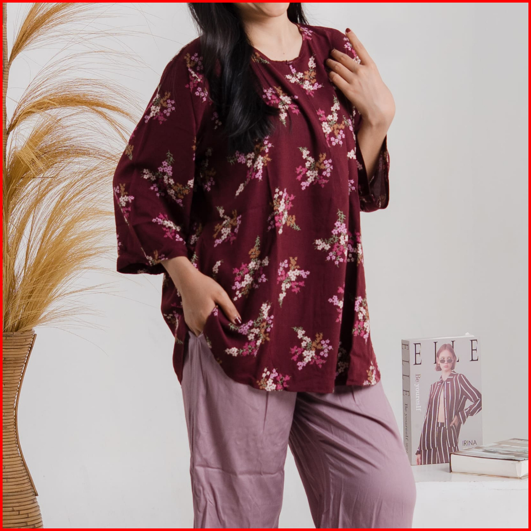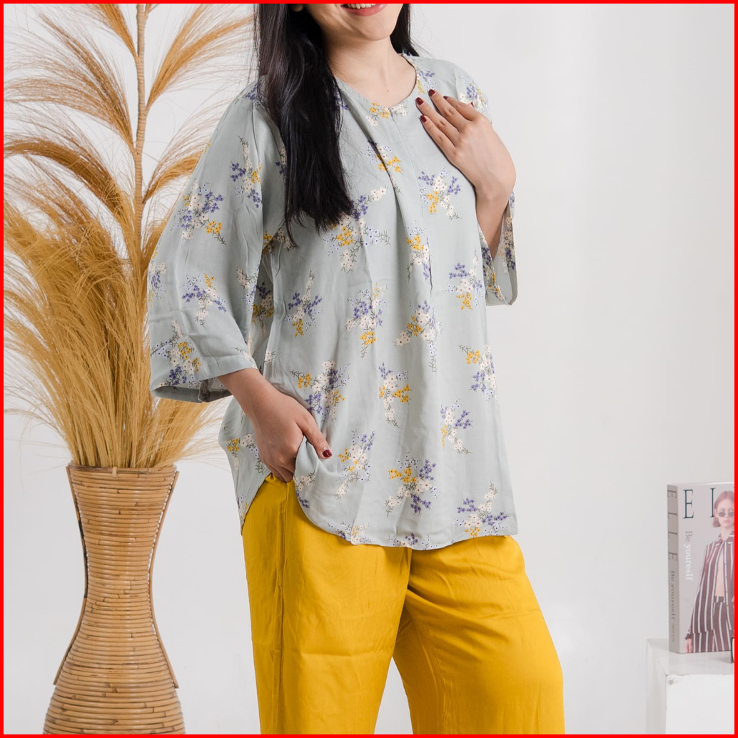 Rar.co - Mawar Biru Oneset Motif Bunga Daster Murah Viral Oversize Bahan Rayon Premium Adem Ringan