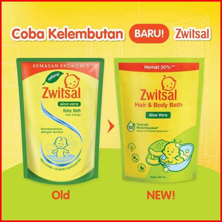 Zwitsal Natural Baby Bath 2-in-1 Hair Body Pouch 400ml Twin Pack