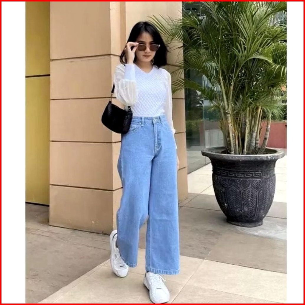 Mozza Jeans Cullote Bawahan Wanita Highwaist Jeans Tebal