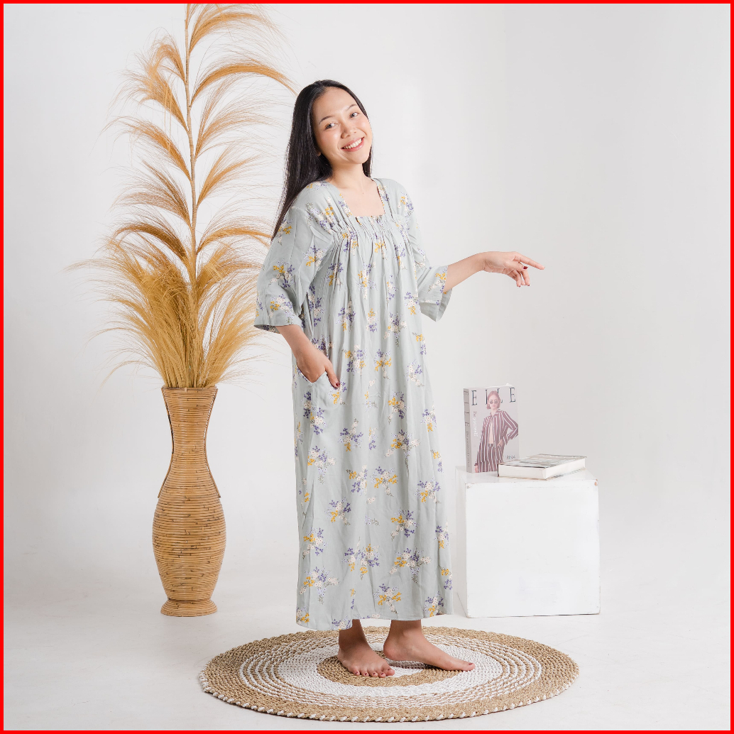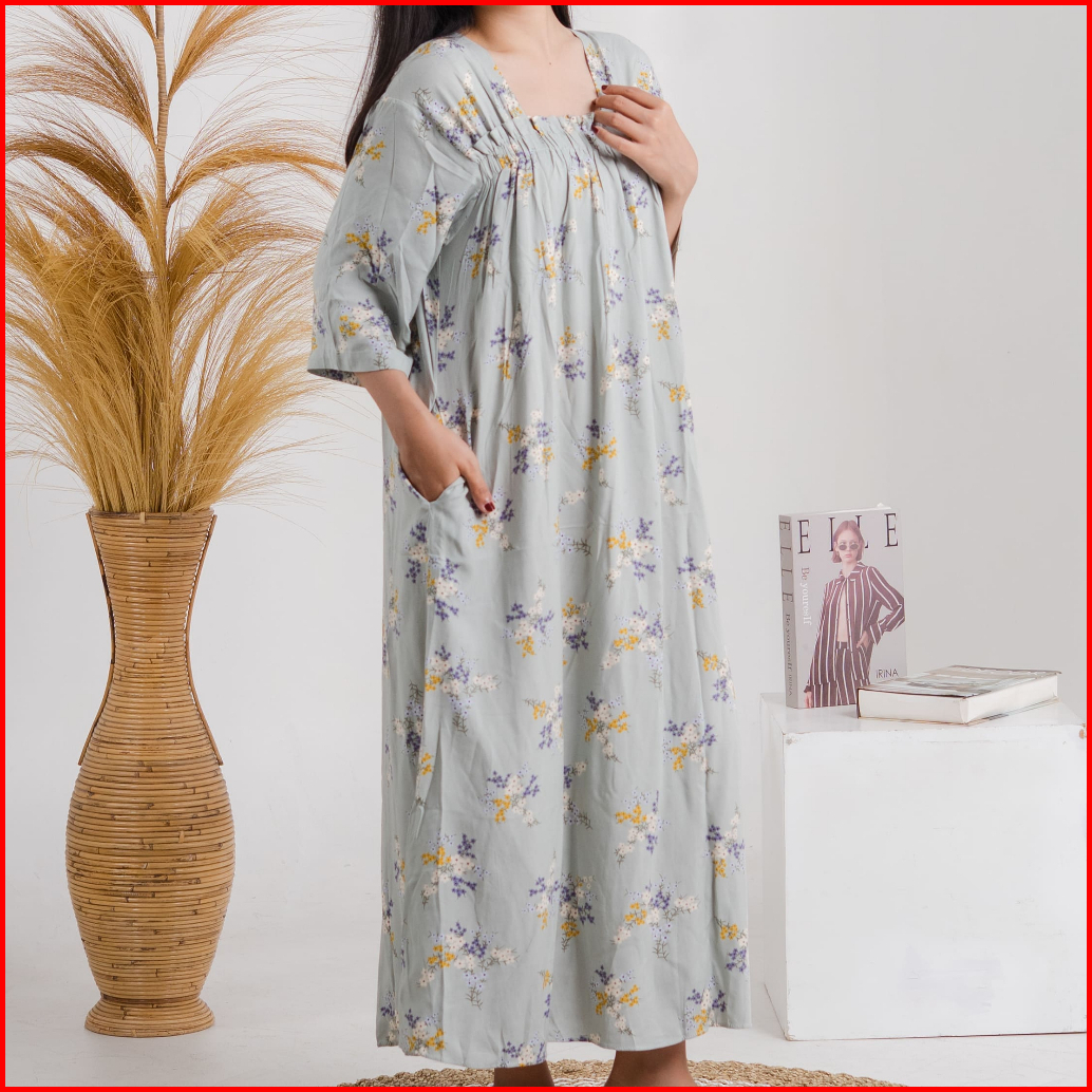 Rar.co - Aster Biru Daster Murah Viral Panjang Rayon Adem Lembut Daster Elegan Motif Bunga