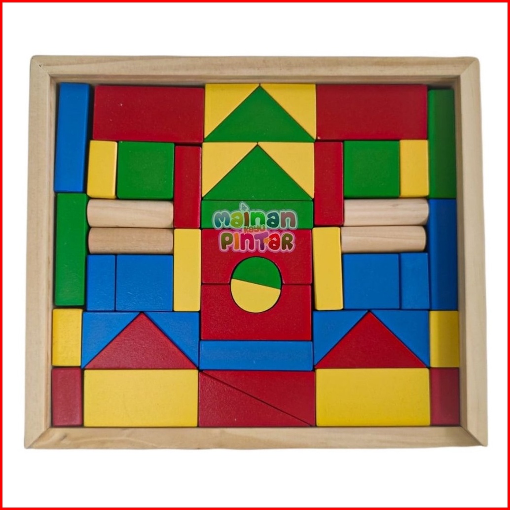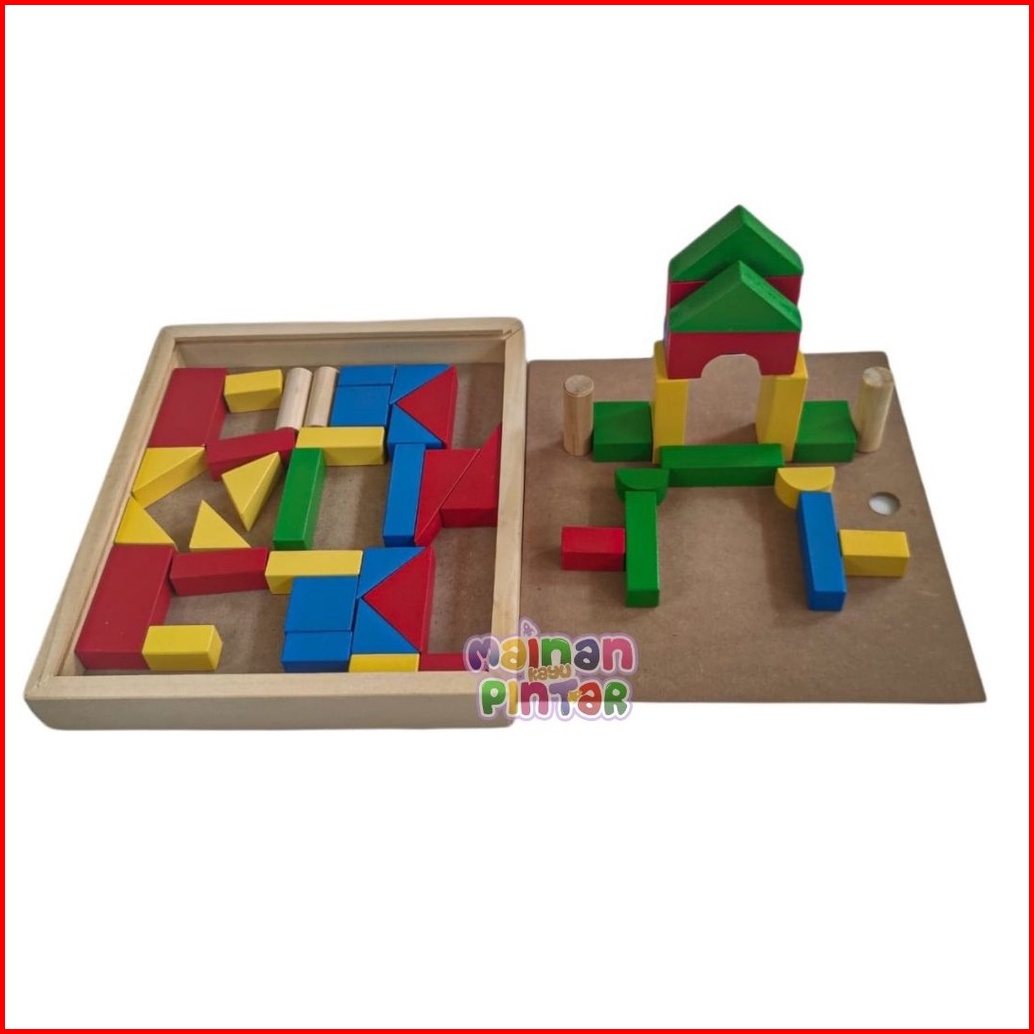 Mainan Edukasi Anak City Block Kayu Balok Warna Susun Blok Bangun Box Dengan Tutup Geser