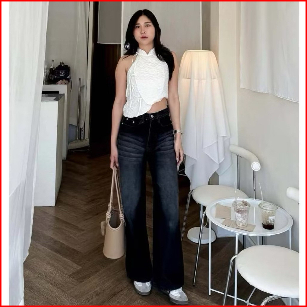 Highwaist Baggy Jeans Hangover Wanita-celana Kulot Jeans Loosepant Gombrong Highwaist Jeans Wanita