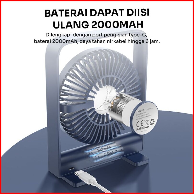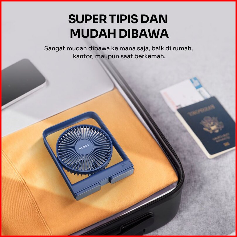 Robot New Rt-bf14b 2000mah Ultra-thin Mini Fan Dark Blue - Garansi 1 Tahun